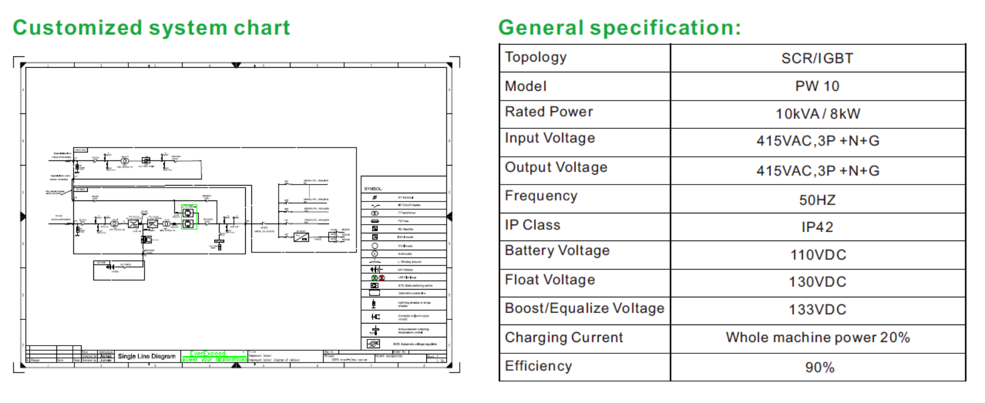 Высокая надежность: встроенные входные, выходные и байпасные изолирующие трансформаторы; использование модульных компонентов IGBT и SCR для обеспечения высокой надежности.