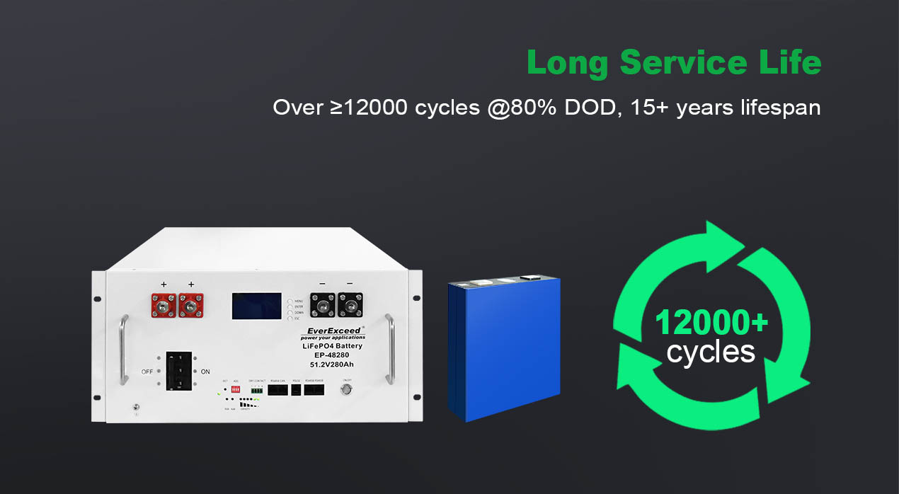 Литий-железо-фосфатные элементы класса А с ресурсом ≥12 000 циклов и сроком службы 15 лет, встроенным огнетушителем, сертифицированные и экологически чистые.