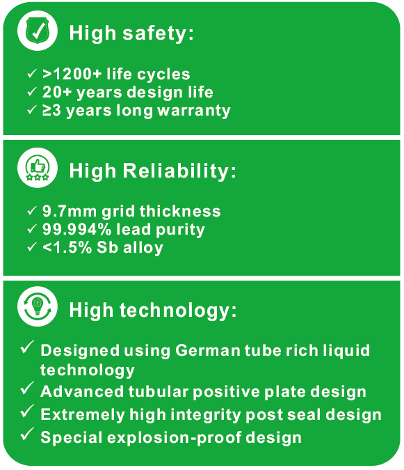 | Технология | Трубчатая свинцово-кислотная батарея + инвертор + фотоэлектрический модуль |