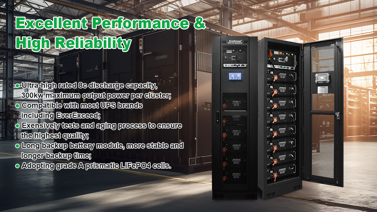 Обеспечивает сверхбыструю разрядку током 8С, совместимость с широким спектром ИБП и длительное время резервного питания благодаря элементам LiFePO4 класса A для высокой надежности и производительности.