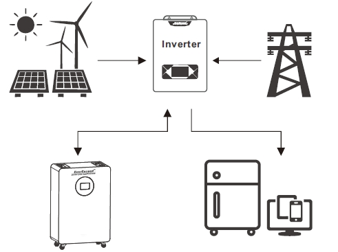В случае отключения электроэнергии и отсутствия солнечной энергии литий-ионный аккумулятор автоматически питает нагрузку, обеспечивая непрерывное электроснабжение критически важных систем. |