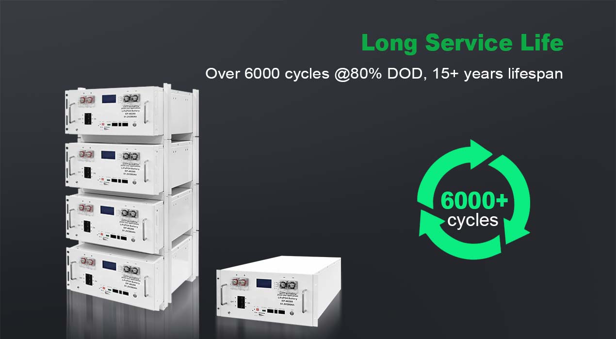 Литий-железо-фосфатные элементы класса А, более 6000 циклов, срок службы 15 лет. Встроенный огнетушитель для дополнительной безопасности. Сертифицировано и экологично.